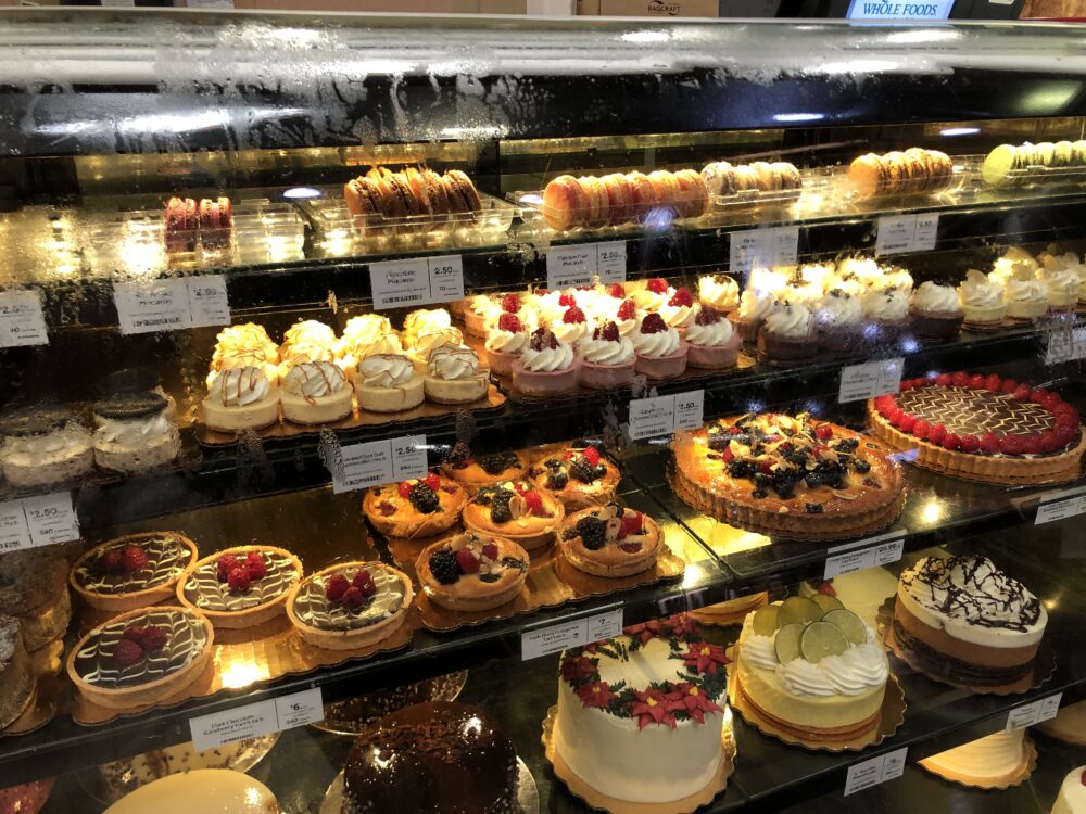 上の写真はWhole Foodsのベーカリーコーナーです。見ているだけでワクワクしますよね!